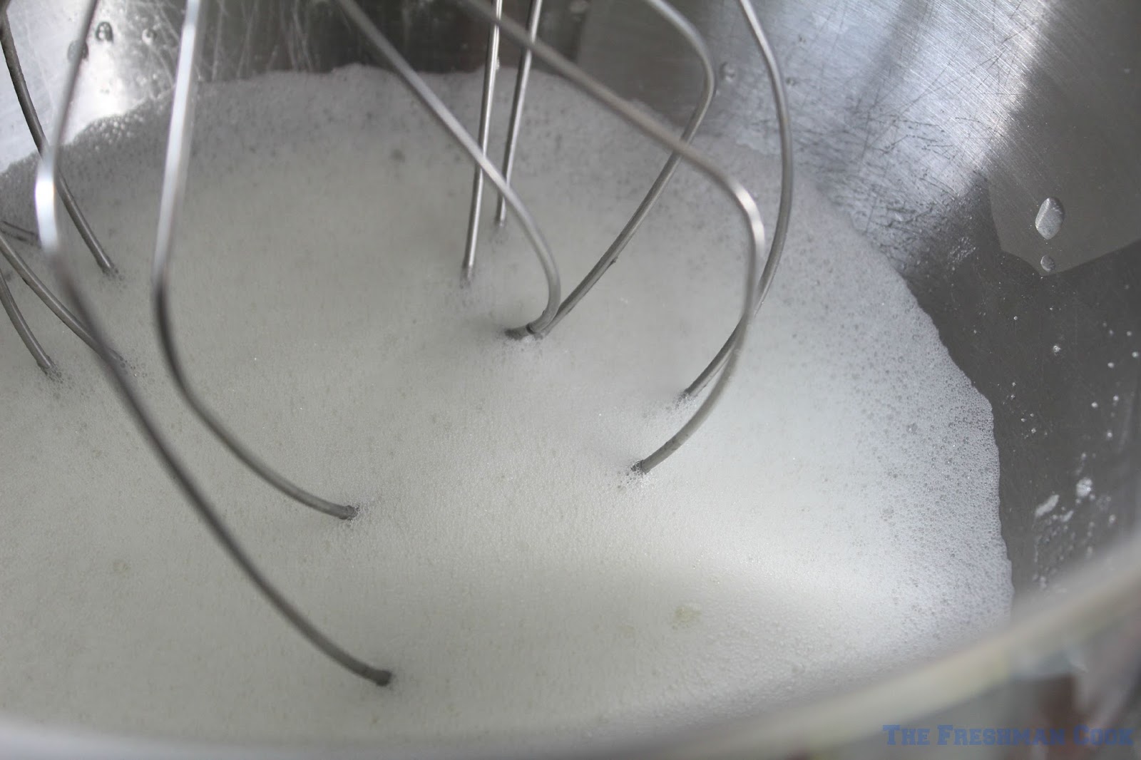 Beat the egg whites, cream of tartar, vanilla and salt in a mixing bowl on medium until soft peaks form. Start adding the granulated sugar a little at a time.