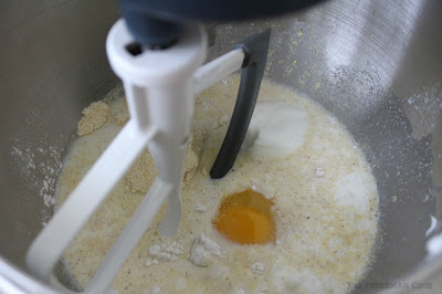 Mix together the flour, cornmeal, baking powder, sugar and salt. Add the milk, shortening and egg. Mix just until combined.