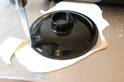 - When it is time to use the fondant, tear a piece from the large piece. Make sure to keep the fondant you are not using, wrapped up. Roll out the fondant until it is 1/8″ thick. Cut out your circle. Cookie cutters work great for this. I did not have a big enough one, so I used a lid as a pattern. Your circle may be a little rough on the edges after cutting it. If it is, use your fingers to go around the circle and smooth it.