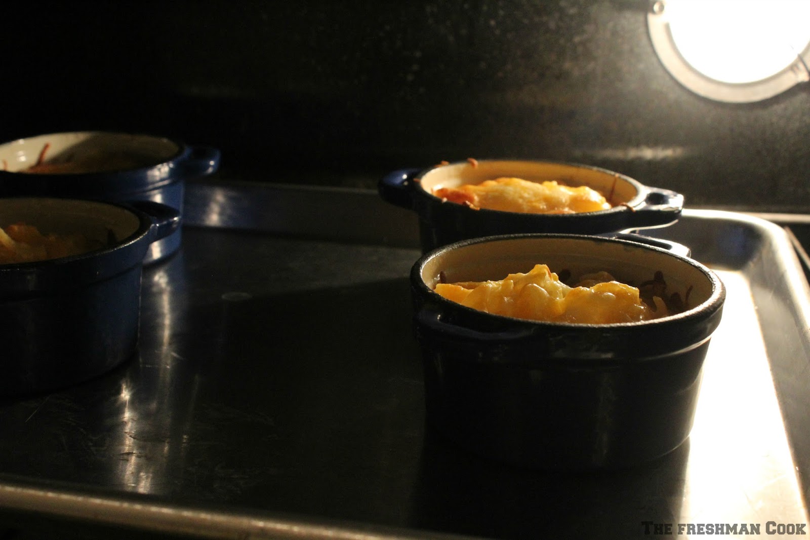 - Spray each baking cup with pan spray. Evenly distribute the mix between the cups. Divide the second 1/4 cup of shredded cheese, between the 4 cups, and sprinkle over the top of the mix.