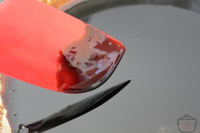 You are looking for the balsamic vinegar to turn thick. Once it has thickened, remove from the heat and let cool. Once it is cooled, pour into a squeeze bottle.