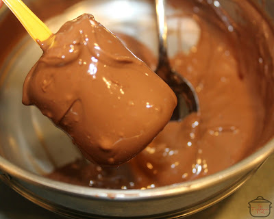 - Dip marshmallows in the chocolate. Coat the entire marshmallow.