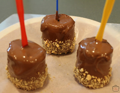 Place the marshmallows on sticks. I used these little canape forks from the dollar store, and they work great. Freeze the marshmallows for 30-40 minutes.