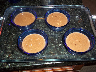 Set your custard cups in a baking dish. The dish needs
