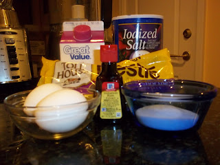 Beat the eggs, sugar, rum flavoring, and