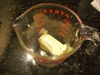 When the rolls have risen, set your oven at 350 degrees, and melt about 6 oz. of butter in the microwave.