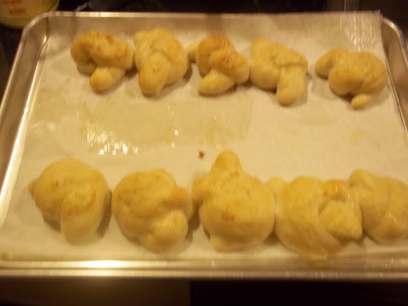 These garlic knots are good. They are also simple to make. I started with Rhodes frozen bread loaves, and within no time at all, I had garlic knots! You will love these. The amount of garlic you put on them is up to you. I only used a little, and I brushed it on, but if you want more, you can dip the finished knots into a saucepan of butter and garlic. They are good, no matter how you do it!