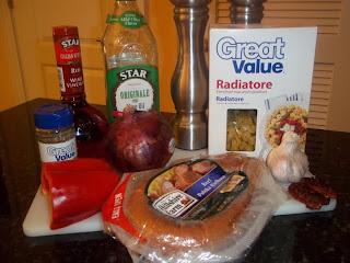 This weeks salad is a dish that is a sure fit for your football buffet. It is made up of a universal favorite~Pasta, and added to the pasta is a spicy, deliciously tasty, beef Kielbasa. Add slices of red onion, and sun dried tomatoes to bring a sweet, heavenly, indulgent taste to the bowl. I think it has something for every football fan!!
