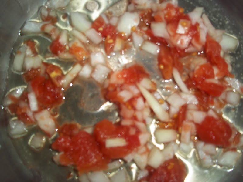 onions until they are clear. Ignore the tomatoes in the pictures.