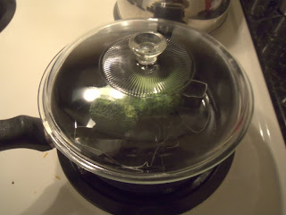 This week I switched the soup/salad portion of our weekly meals to include a vegetable. Today the vegetable is steamed broccoli. I chose broccoli because it has one of the highest amounts of antioxidants of all vegetables. It’s just good, and good for you. This dish requires very little in the way of ingredients making it a good dish for a freshman cook. But it’s not the easiest dish. Close attention is needed to the steaming process to produce the best tasting broccoli, because over cooking can ruin it.