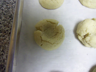 Immediately after pulling the cookies out of the oven, use your thumb, or the back of a measuring spoon to make a round indention in each cookie.