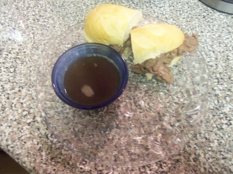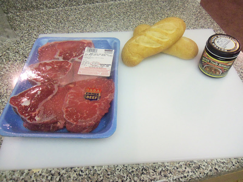I love French Dips. I don’t know why I don’t make them more often. They are simple, easy, and only a little time consuming. But well worth it. When making this French Dip I chose a really good cut of meat. Because there is nothing going on the sandwich, other than the meat, the meat becomes the most important aspect of the food. I bought Prime Top Sirloin from the grocery. It melts in your mouth. It has a higher cost than choice graded meats, but well worth it. I bought the meat at Costco. They always have a nice selection of prime graded meats at a decent price. I picked up really fresh rolls from the bakery in the grocery store. Yum!!