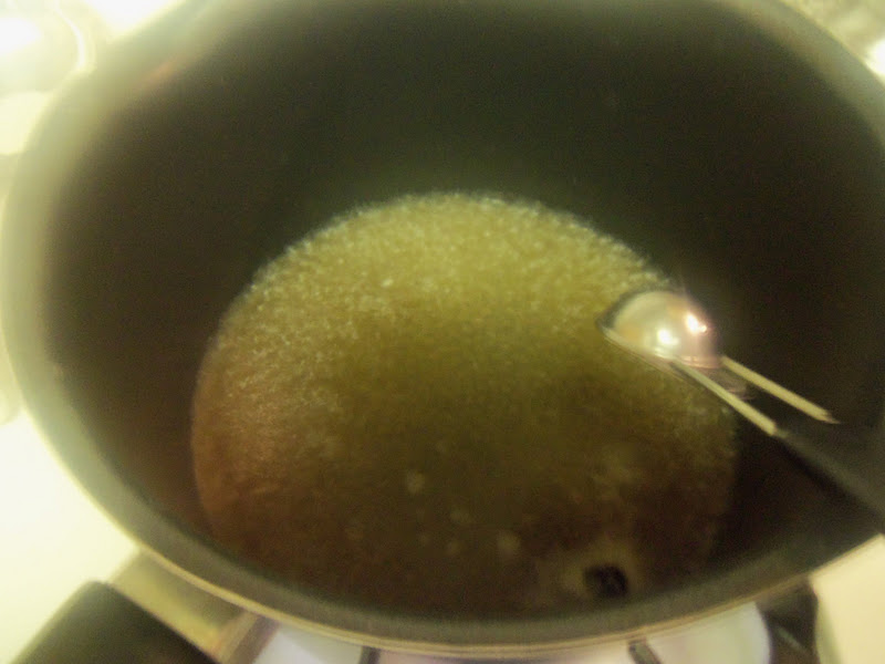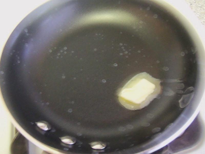 In your frying pan, melt a pat of butter. Once the butter is melted turn up the temp to medium high.