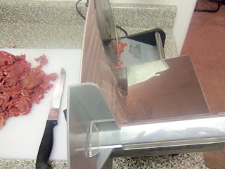 I cut all of the meat on a slicer. If you don’t have a slicer, you can use a knife, just be sure to cut the meat thin.