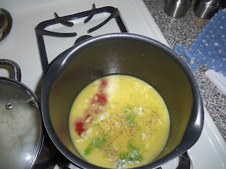 Whip your 2 eggs together. You are making scrambled eggs
