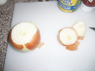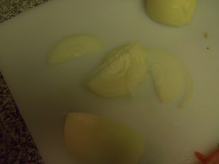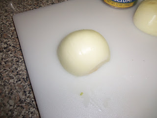 then I peeled the onion, and cut it in half.
