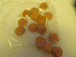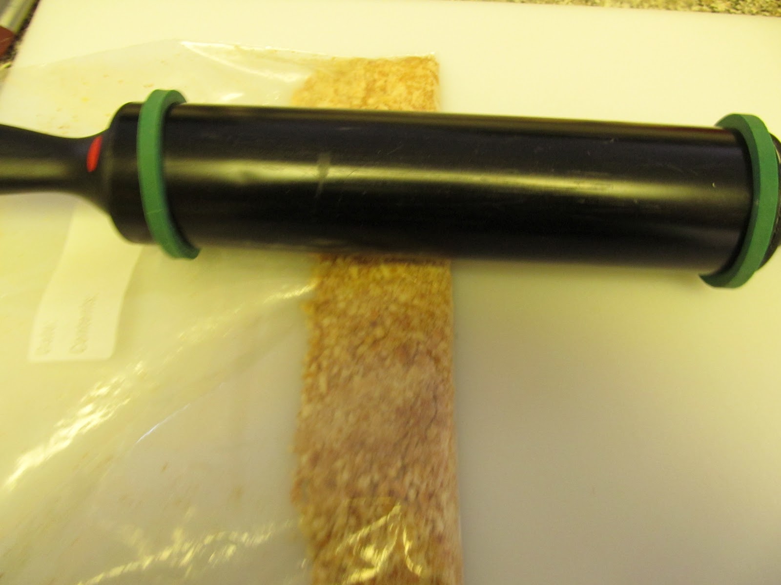 Put about 15 or so Vanilla Wafers in a plastic bag.