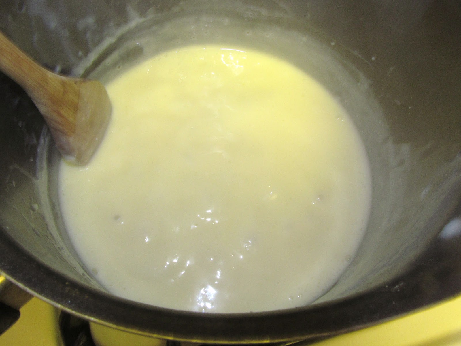 egg and milk mix into the saucepan.Â