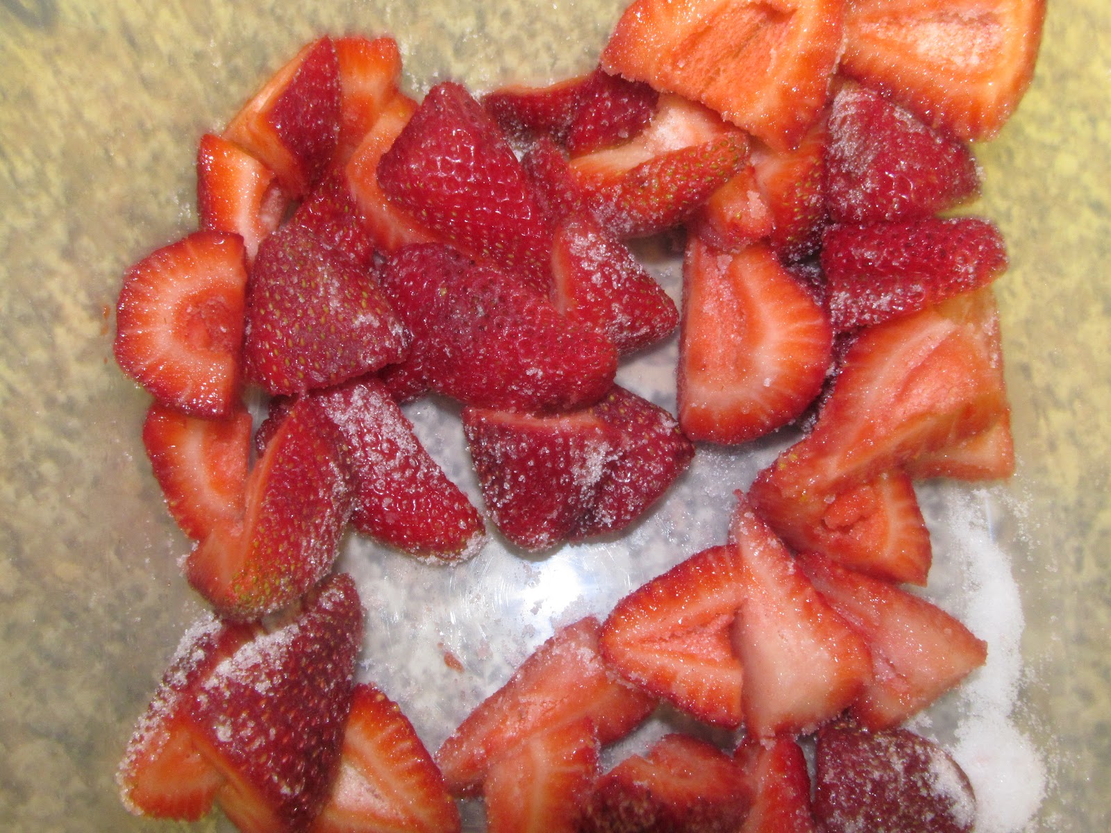 If your strawberries need a little sweetening, sprinkle a spoonful or two of sugar on them. Mix it up and refrigerate.
