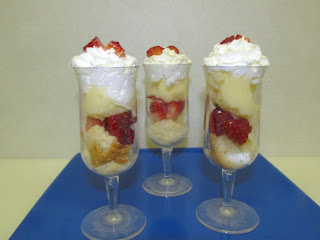 Our first mini is a takeoff on strawberry shortcake and I call it Creamy Dreamy Shorties. Its made of strawberries, pastry cream, and pound cake, and topped with whipped cream. Yum!