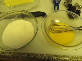 In a medium bowl, mix together the egg yolk and the egg. In a separate bowl, mix together the cornstarch and the 1/3 cup of sugar.