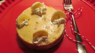 It is Improv Cooking Challenge day and January’s two ingredients are banana and nutmeg! Aren’t those great ingredients? So many recipes and ideas came to mind, that, as usual, I had a hard time deciding what to make. I decided on this creamy Banana Cheesecake! I crunched up some left over sugar cones for the crust, added nutmeg to the batter, and made the cheesecakes in mini pans. I think they turned out fantastic!