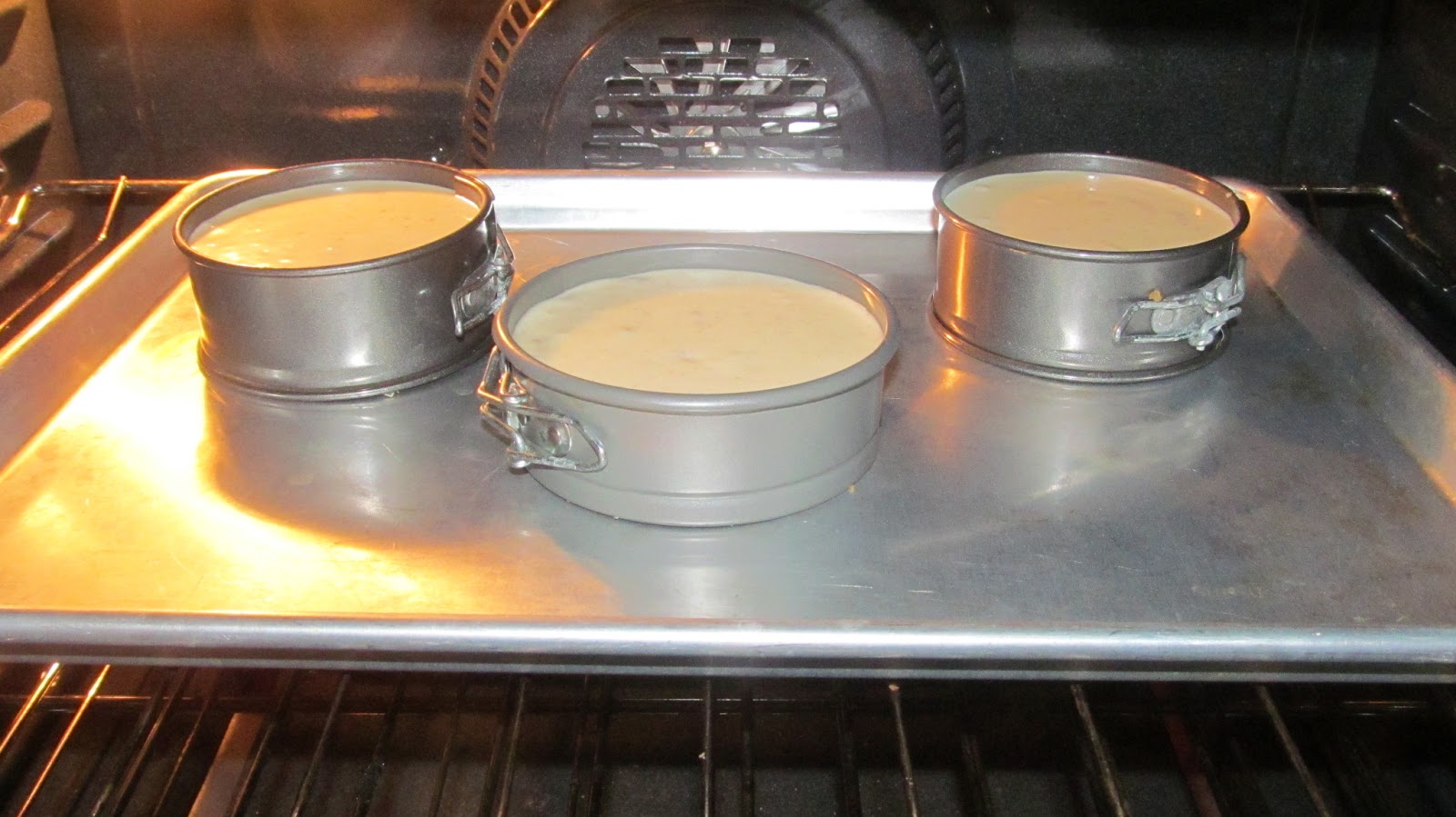 and 1 hour and 15 minutes for the large pan. The cheesecakes