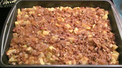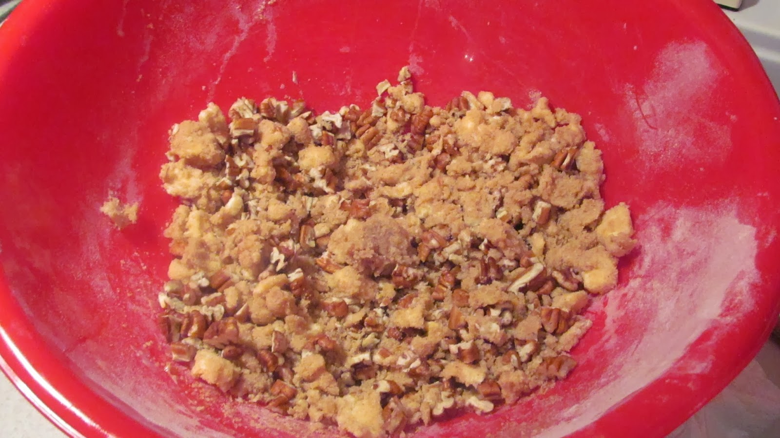 Chop your pecans, and add to your mix. Put the topping in the fridge until your crust and apple filling are finished cooking for the 30 minutes.