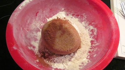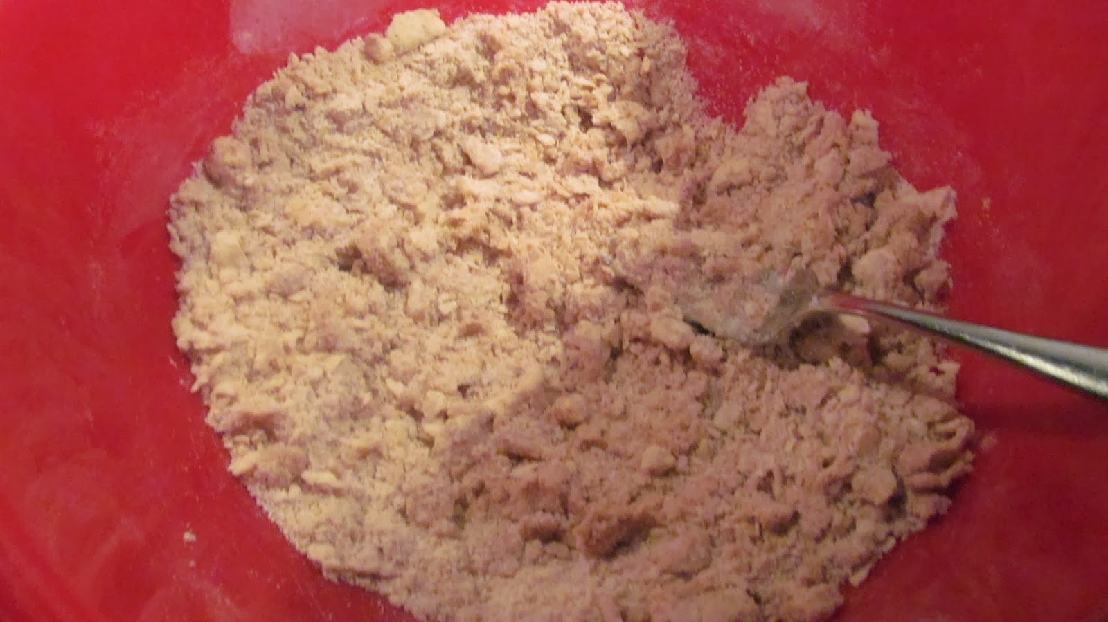 Then mix in the butter until the pieces become very small, and your mix resembles cornmeal. Add your apple cider and mix together.