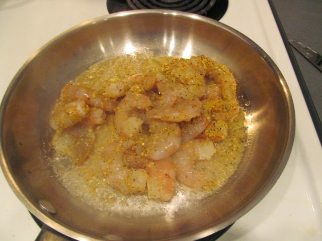Heat your oil on medium heat. Add your shrimp including the liquid.