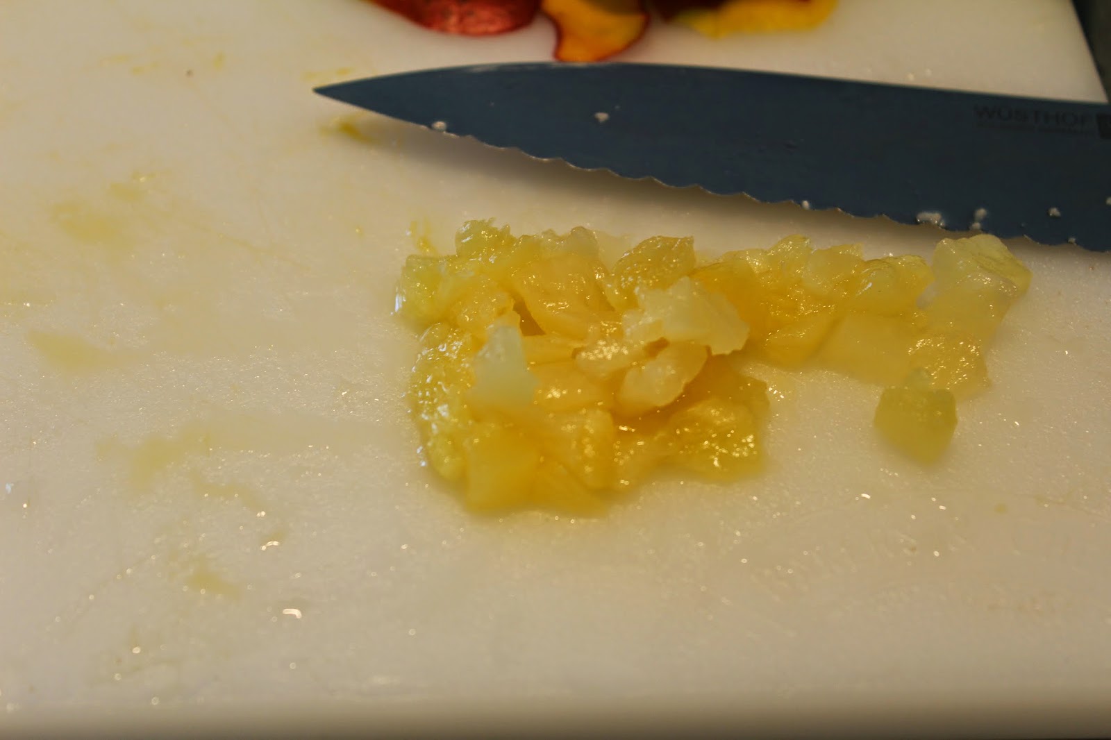 Cut 1/8 of a cup of the pineapple chunks in to tiny