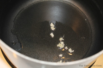 Heat the olive oil and crushed garlic together in a large pot on medium heat.