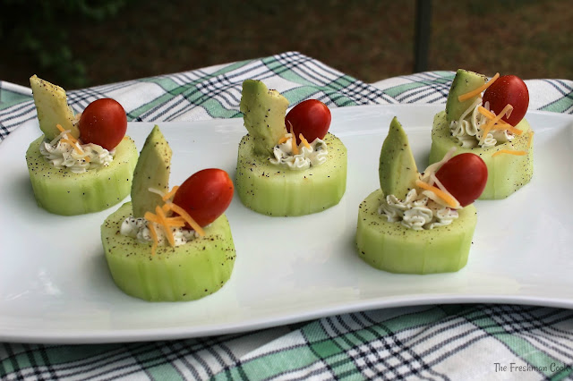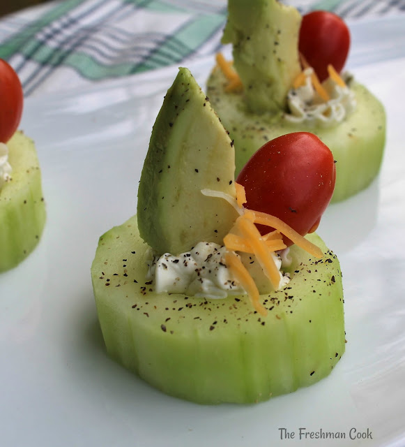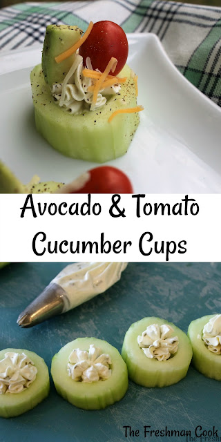 Avocado and Tomato Cucumber Cups (1 cucumber makes 6-8 pieces) (printable recipe at end of post)