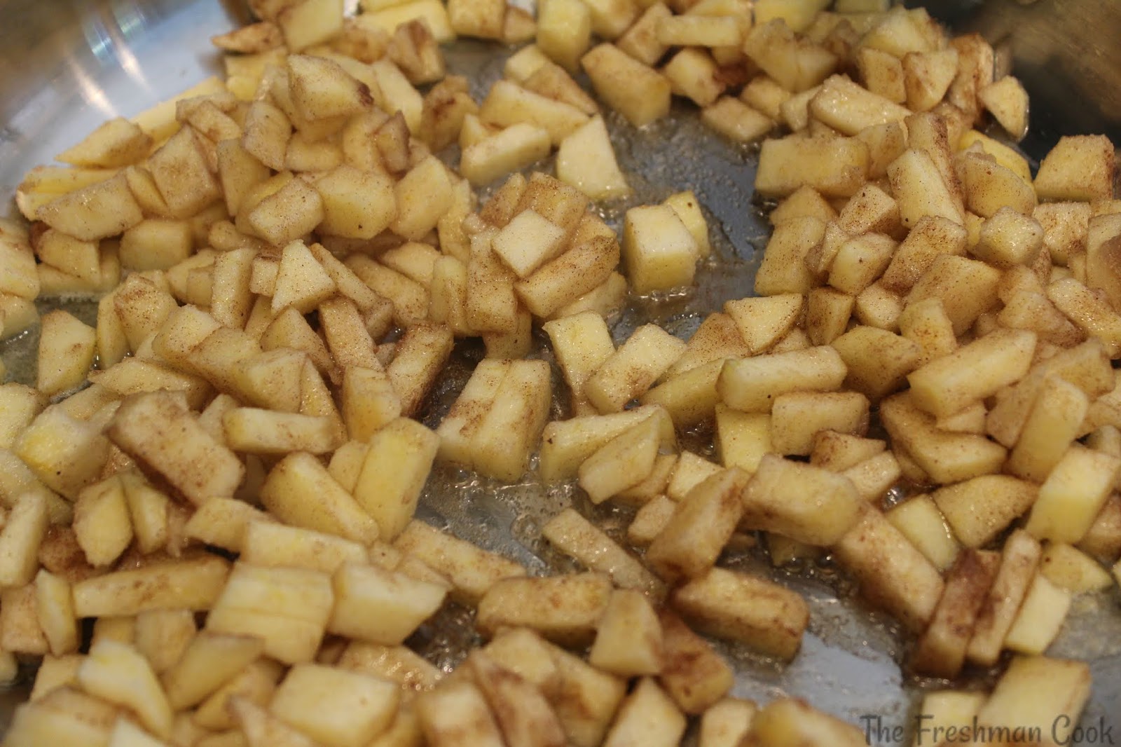 - Melt a 1/2 tablespoon of butter in a large pan. Add the apple mix. Cook on medium heat to start, stirring the apples often.