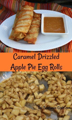 Look at these yummy Caramel Drizzled Apple Pie Egg Rolls!