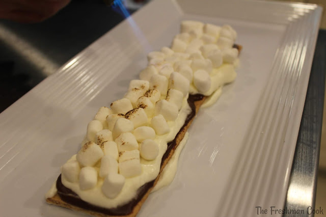 - Use a separate plate to toast the marshmallows for the top of the cake. Set aside.