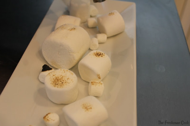 Use a separate plate to toast the marshmallows for the top of the cake. Set aside.