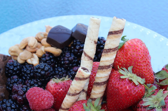 - Red and blue go so well together that I had to put them side by side. The blueberries are soft and juicy and the fresh strawberries with their green stems just create it’s own little picture. I used the chocolate cookies as a border to contrast the softness of the fruit.