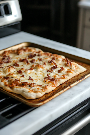 - Bake: Place the flatbread in the preheated oven and bake for 10-12 minutes, or until the edges are golden and the cheese is slightly melted.