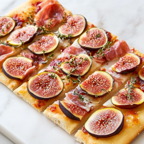 Fig and Prosciutto Flatbread is a delicious appetizer or snack featuring a crispy flatbread topped with fresh figs, salty prosciutto, and creamy cheese, often goat cheese or ricotta. The figs add sweetness, while the prosciutto provides a savory flavor. It’s typically drizzled with balsamic glaze and baked until warm, making it a perfect combination of sweet and savory.