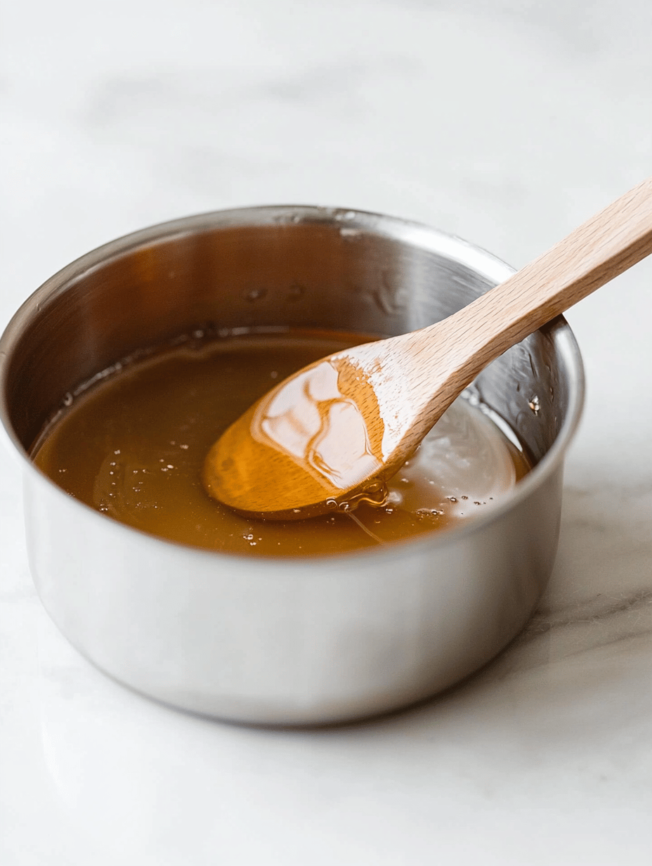 - Meanwhile, prepare the honey syrup by combining water and honey in a small saucepan. Warm gently over low heat, stirring until the honey dissolves completely. Let it cool slightly.