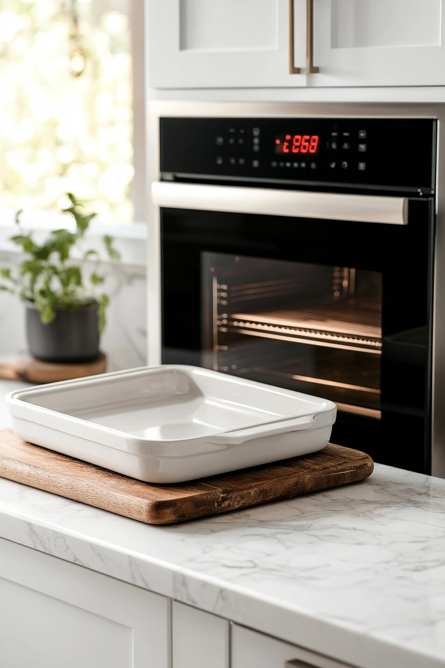 - Preheat your oven to 350°F. Lightly spray a 9×13 inch baking dish with nonstick cooking spray.