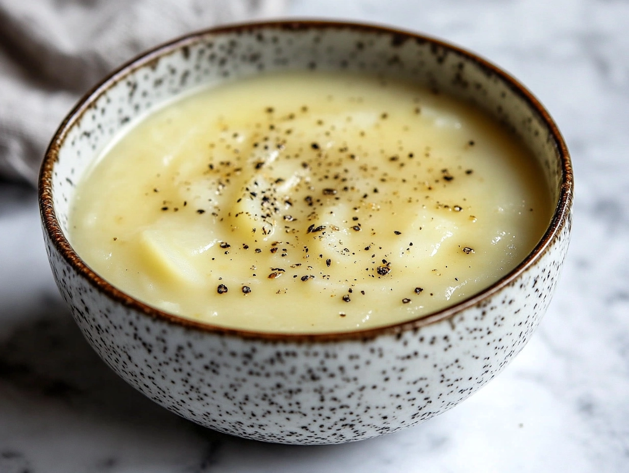 This comforting potato soup is made by simmering tender potatoes and aromatic onions in vegetable broth, then blending until velvety smooth. The final dish has a rich, creamy texture with a warm, inviting appearance, perfect for cozy moments. It’s a simple, honest dish that highlights the magic of humble ingredients and gentle technique.