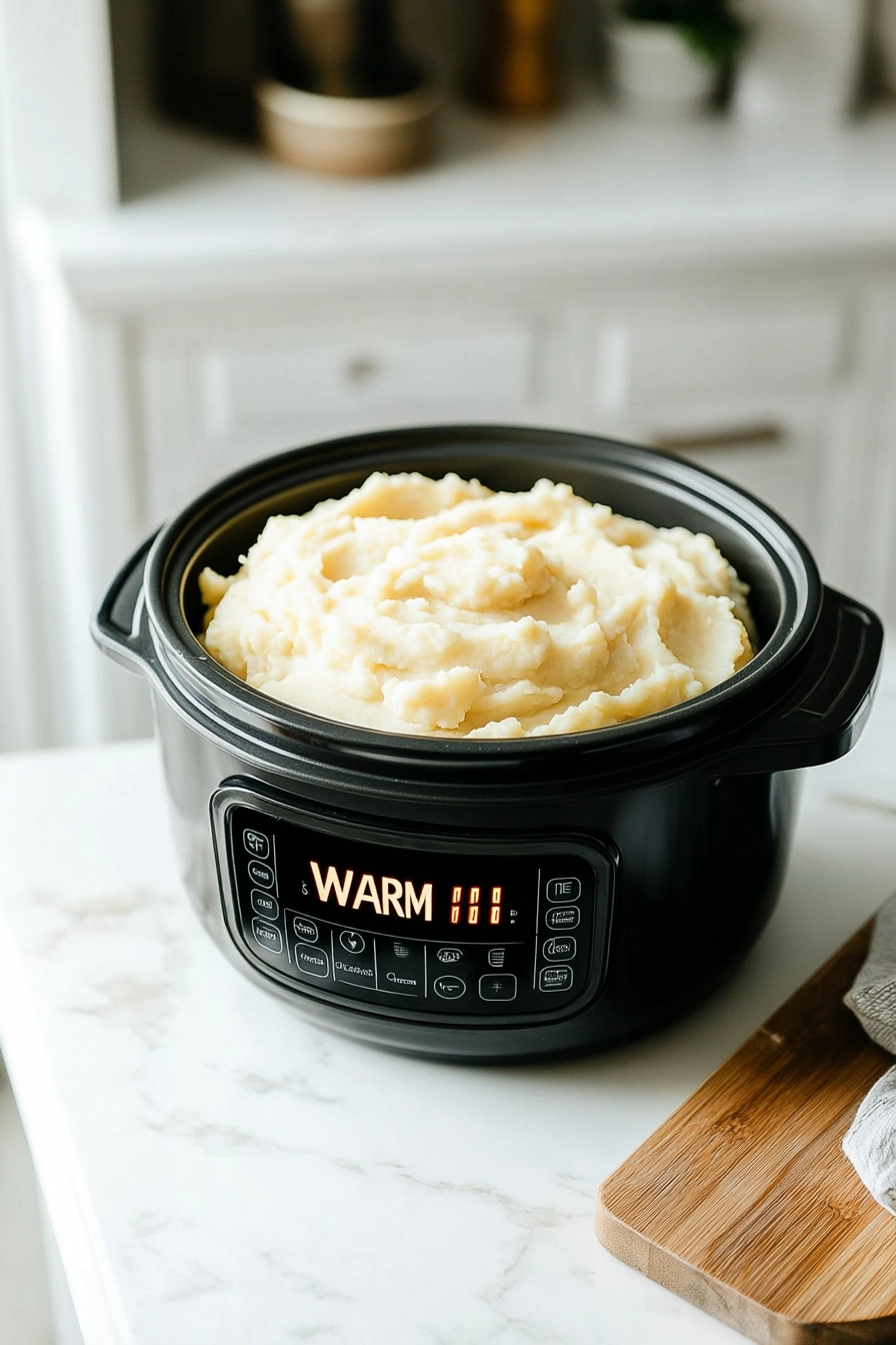 - Once the potatoes are ready, cover them and set the slow cooker to the warm setting until you're ready to serve.
