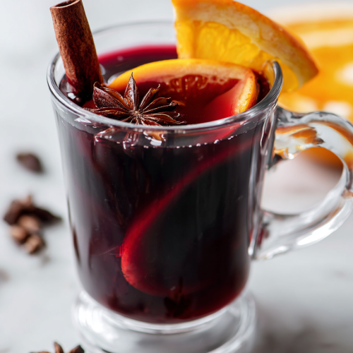 This cozy mulled wine recipe involves gently simmering red wine with aromatic spices, citrus slices, and a touch of sweetness. As it heats, the flavors meld into a fragrant, comforting beverage with a rich, spicy aroma and a vibrant citrus brightness, perfect for chilly evenings. The final drink is warm, slightly spiced, and beautifully infused with the festive notes of cinnamon, star anise, and orange.