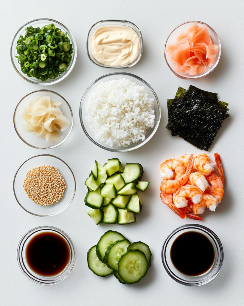The magic is in the contrast. Soft rice, creamy avocado, tender shrimp, crisp cucumber, and crunchy fried onions create balance in every bite. The spicy mayo adds richness while soy sauce deepens the flavor.