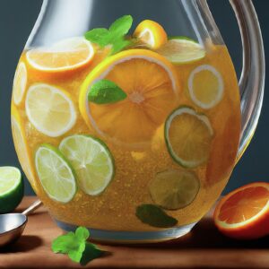 - 1 cup sliced mixed fruits such as oranges, lemons, limes, peaches, strawberries