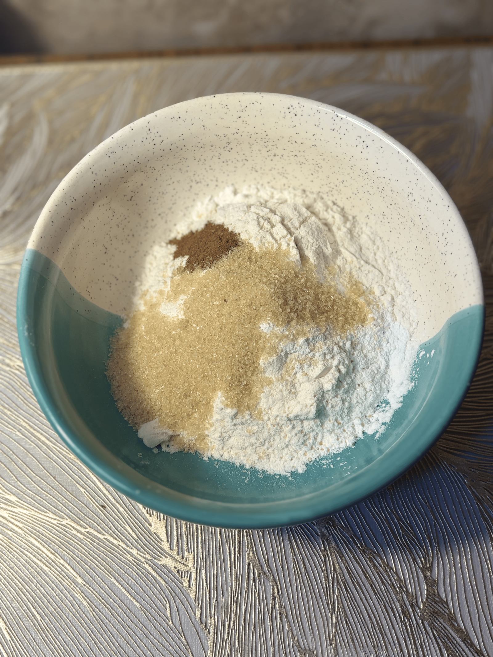 - Whisk the flour, sugar, baking powder, baking soda, spices, and salt in a bowl.