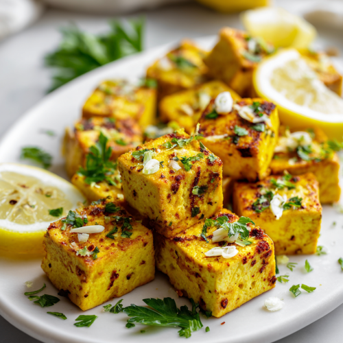 11. Serve hot: Plate the tofu with a squeeze of fresh lemon, and enjoy the bright, crispy bites.