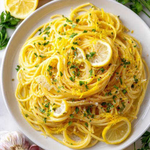 This vibrant lemon pasta combines simple ingredients with the bright tang of fresh lemon zest and juice. The dish is cooked with tender pasta and coated in a fragrant, citrus-infused olive oil sauce, resulting in a light, zesty final appearance with a glossy, inviting finish. Perfect for a quick, refreshing meal that feels like a burst of sunshine on your plate.